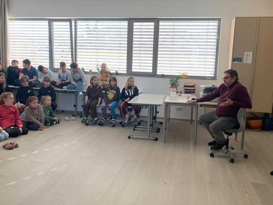 Was ist ein Zwergplanet? Wie entstand unser Sonnensystem? Was ist das schwarze Loch? Viele Fragen schwirrten schon vor dem Besuch von Astrophysiker Johannes Leitner in den Köpfen der Schüler/innen der Volksschule Bad Waltersdorf herum und darum freuten sie sich schon sehr auf ihn. Der Wissenschaftsbotschafter konnte die Fragen über unser Universum und die Entstehung der Erde beantworten und begeisterte sowohl die Kinder als auch die Lehrkräfte mit seinen Ausführungen. Er vermittelte den Schüler/innen von der ersten bis zur vierten Schulstufe dieses Thema kindgerecht anhand von Anschauungsmaterial und Erklärungen.