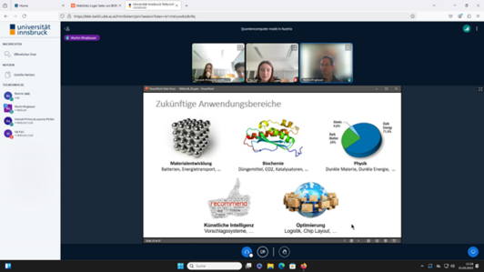 Der Lehrer war beeindruckt vom Besuch: “Uns wurde auf anschauliche Art und Weise der Unterschied zwischen herkömmlichen Computern und Quantencomputern näher gebracht und deren Potential erläutert. Durch den interessanten Vortrag und die gemeinsame Diskussion bekamen wir einen spannenden Einblick in die Grundlagenforschung, aber auch in die ersten Anwendungen dieser Technologie.”